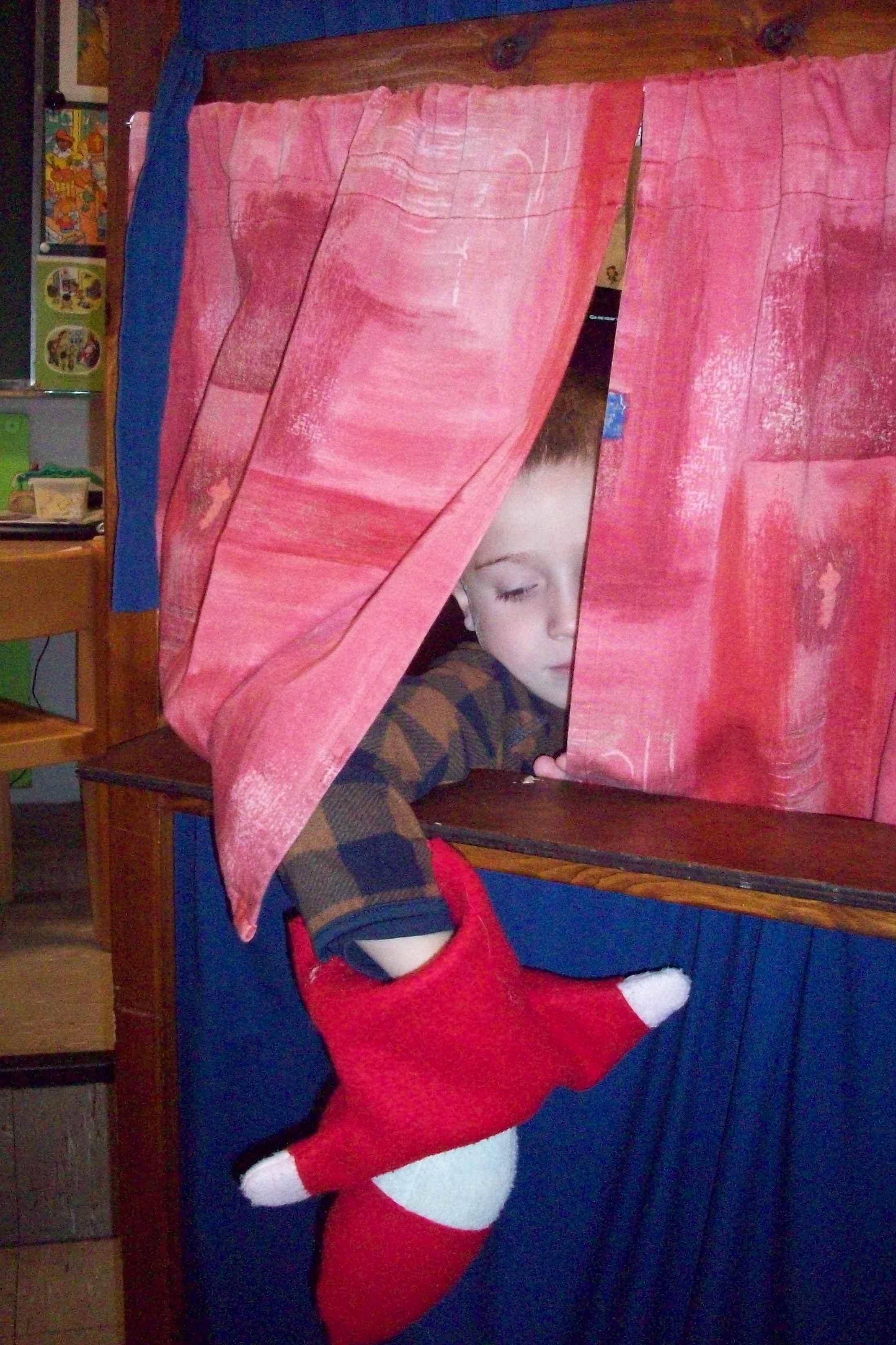 We spelen zelf poppenkast en verzinnen ons eigen verhaal.